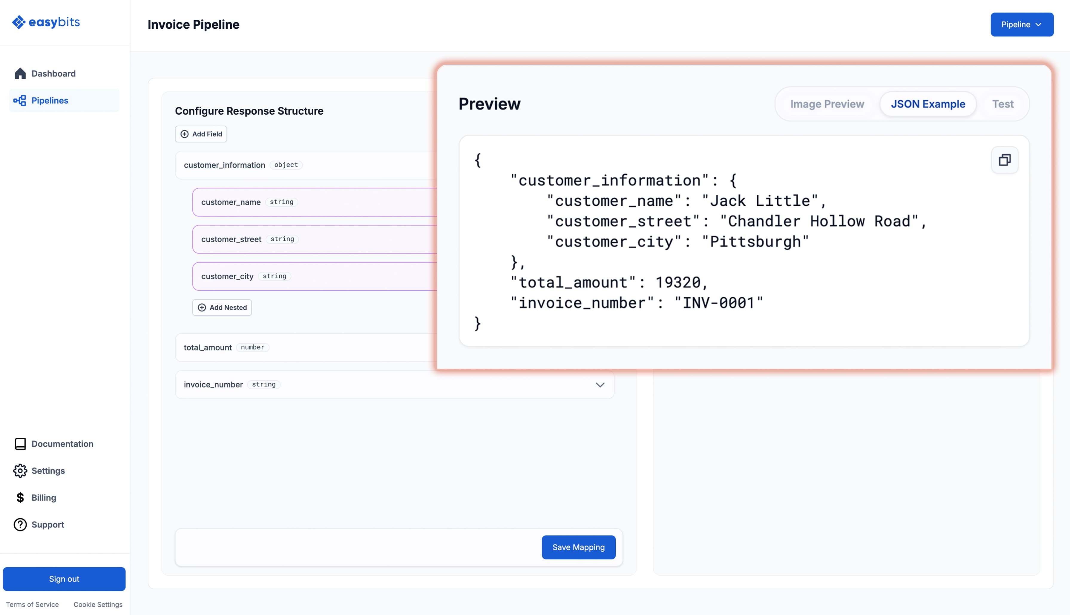 Upload a sample document, map your fields, and get a dedicated API endpoint. Integrating with n8n is as simple as dropping in an HTTP Request node – no custom code or heavy configuration required.