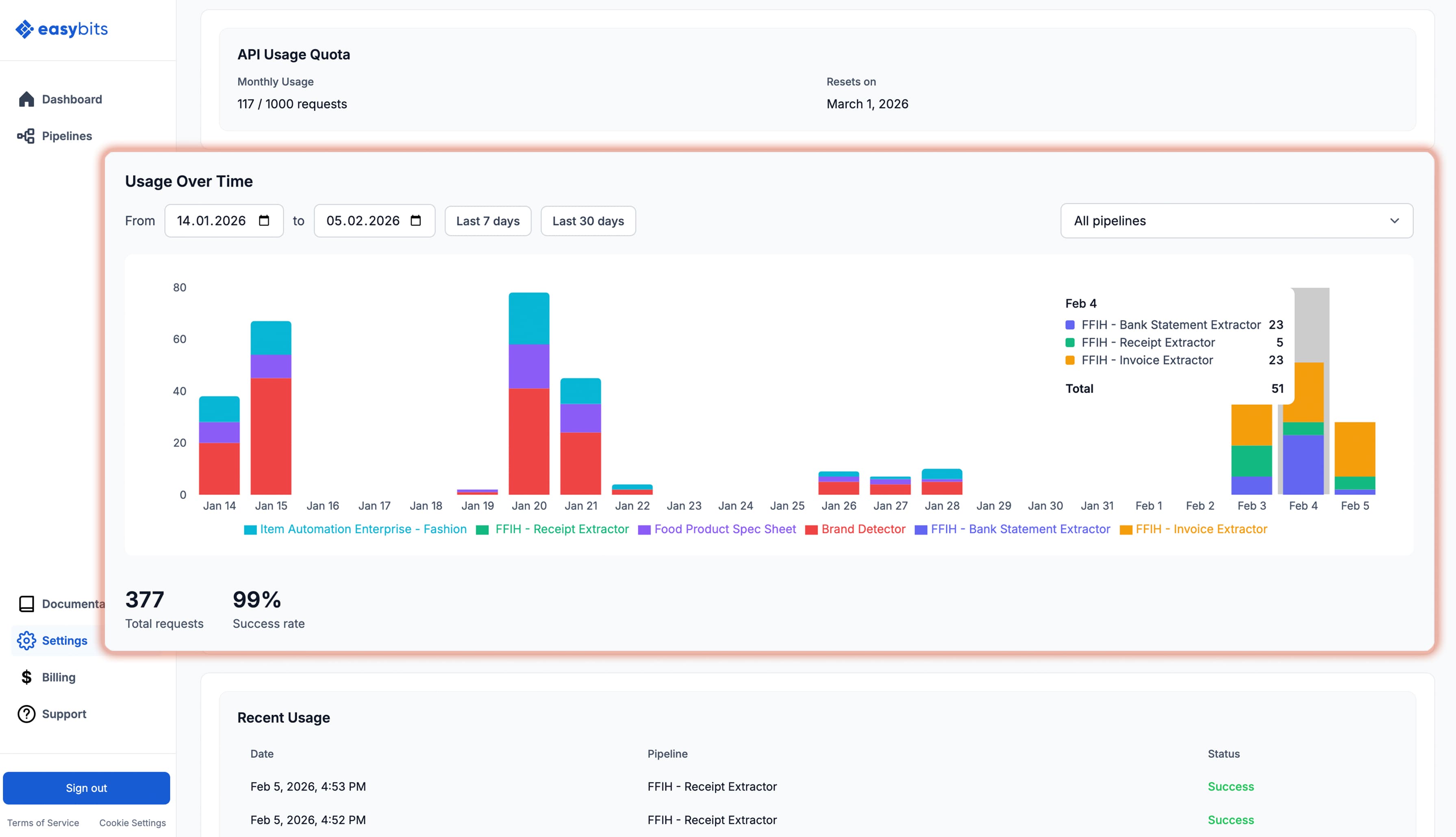 Buying "credits" adds an unnecessary layer of complexity to your stack. With easybits, 1 request equals 1 request. No proprietary currencies, no tokens, and no surprises. Start building for free and move to one of our available plans starting at €19 per month when you're ready to scale.